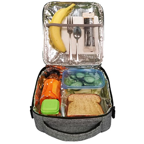 CLASSICAL PROFESSIONAL STYLING: Charcoal gray lunch bag is made to look good in business and casual settings and ideal to pack lunch, snacks, and general items for the office, school, trips, and more.