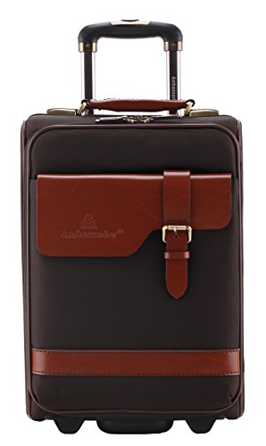 Product Description Ambassador vintage series top-grain Leather is made with waterproof nylon and top-grade genuine Leather. Timeless and elegant designed with vintage style and metal accents. Zippered outside pocket underneth the leather flap is well situated, padded and convenient. Leather handle with metal accents is very comfortable. Strengthen alumium alloy rod and metal structural low-noise wheels are duarable and trustable. We provide 3 years global limited warranty. 0