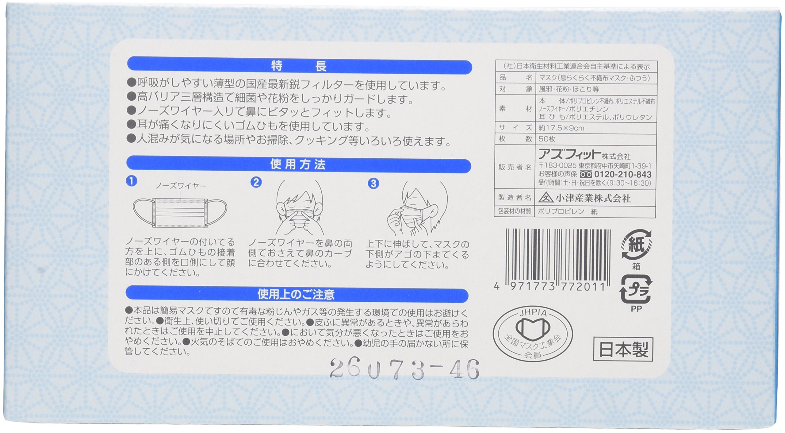 Japan Personal Care - Ozu breath comfortably non-woven fabric mask usually size 50 pieces *AF27*