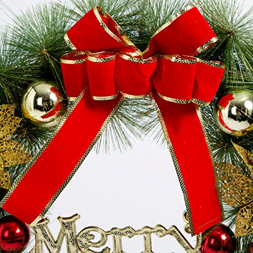 - Beautiful Ornaments: Christmas wreath contains bells, bowknots, balls, flowers, trumpets, fire berries, with a red and golden glitter theme, this Christmas wreath is sure to shine and impress, perfect accessory to enhance any type of holiday decorating theme. Must be a very beautiful gift for your life