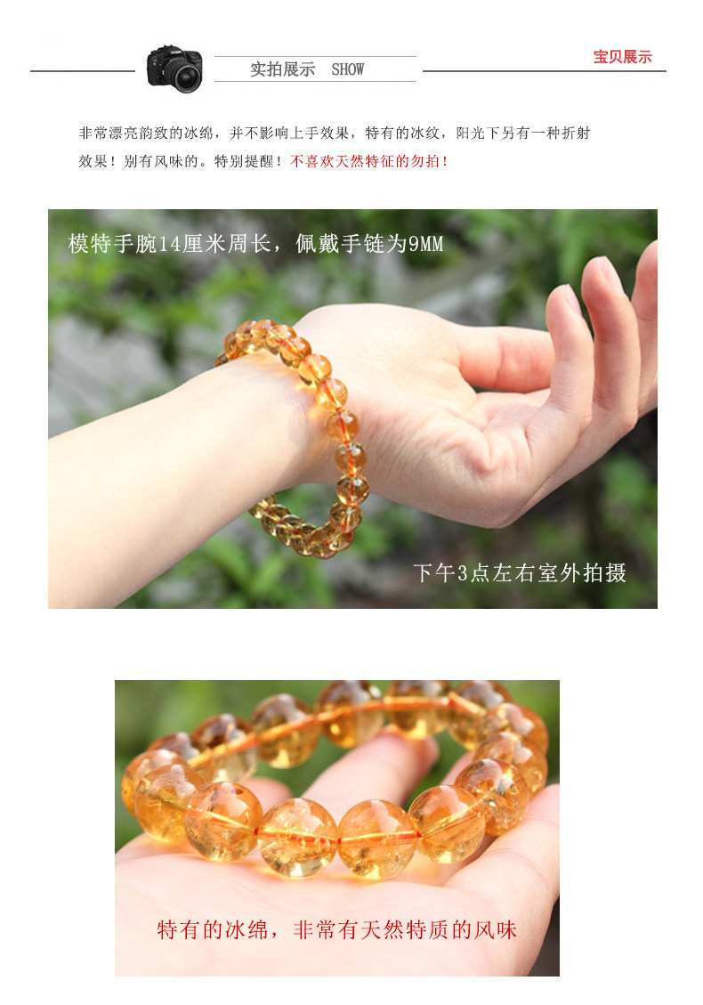 天然巴西黄水晶手链 天然水晶手链 男女款