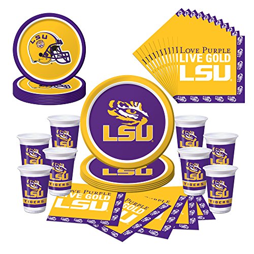 Louisiana State LSU Tigers Party Pack - Plates, Cups, Napkins - Serves 8