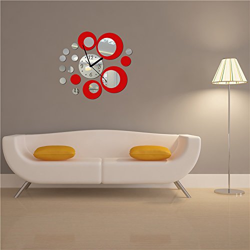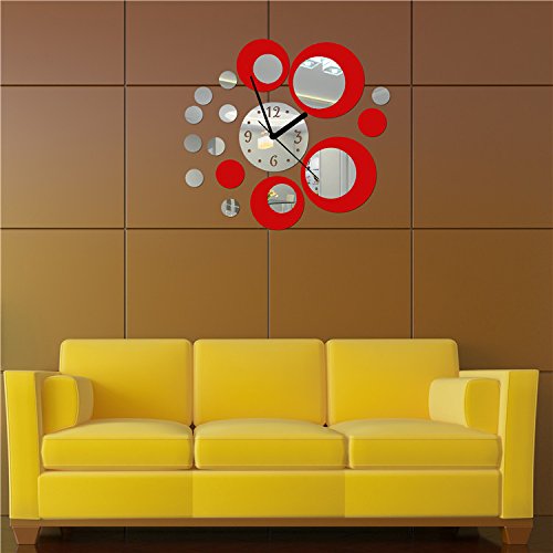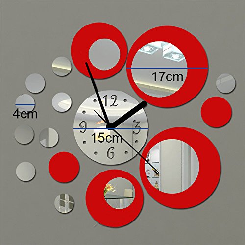 -. Feature : New World Of DIY Household,100% Acrylic Material / It is a real clock, you can calculate time, approximate time / clock diameter:15cm; circle diameter: 4-17cm / 1MM thick plastic mirror,Power by AAA batteries (Not included) / Very fashion and modern breath, Can DIY. You could design you like