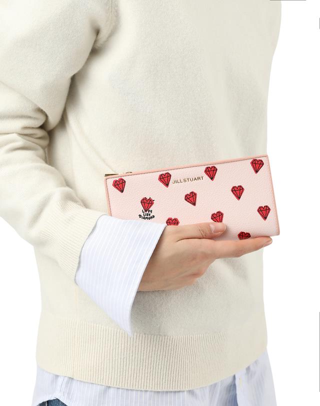 핑크 컬러의 질 스튜어트 하트 다이아몬드 패턴으로 귀여운 장지갑입니다.