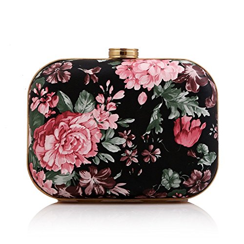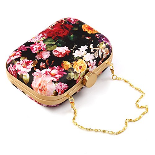 -. Title : Women's Floral P.R.Int PU Leather Hardbox Clutch Colorful Mini Prom Evening Bag with Chain