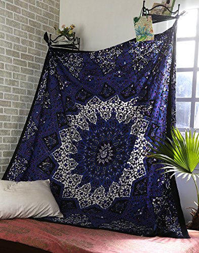 Popular Handicrafts Hippie Mandala Tapestry, Blue Purple Tapestry Wall Hanging, Indian Tapestry, Large Table Runner Bed Cover Indian Art, Cotton Bohemian Tapestry, Hippie Tapestry, Cotton Bed Sheet, Decor Art Wall Hanging