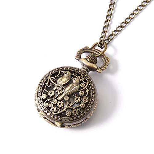 -. Title : YouYouPifa Hollow Bird Plum Blossom Pattern Bronze Round Small Pocket Watches