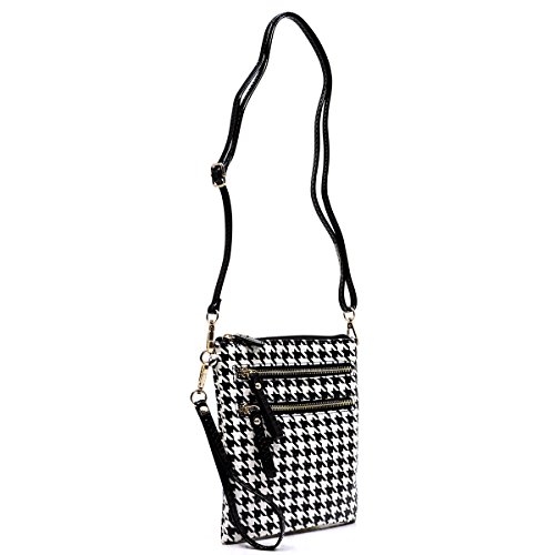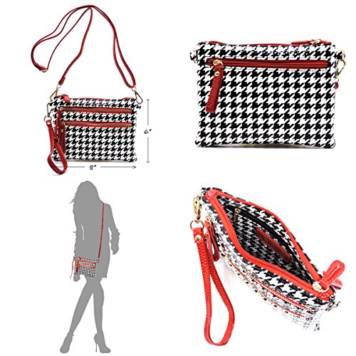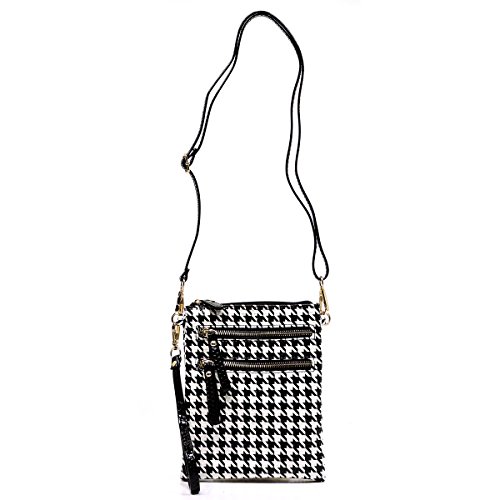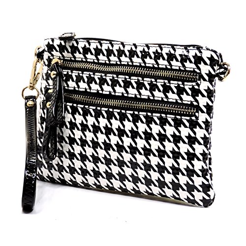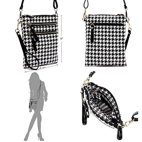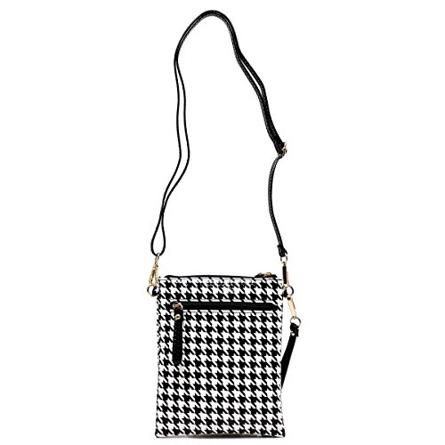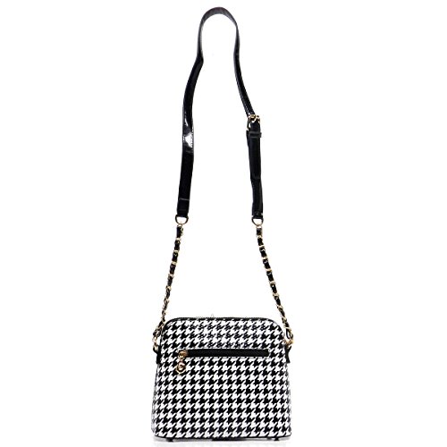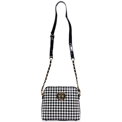 -. Title : Elphis Houndstooth Glossy Box Satchel Crossbody Bag Purse (H049)