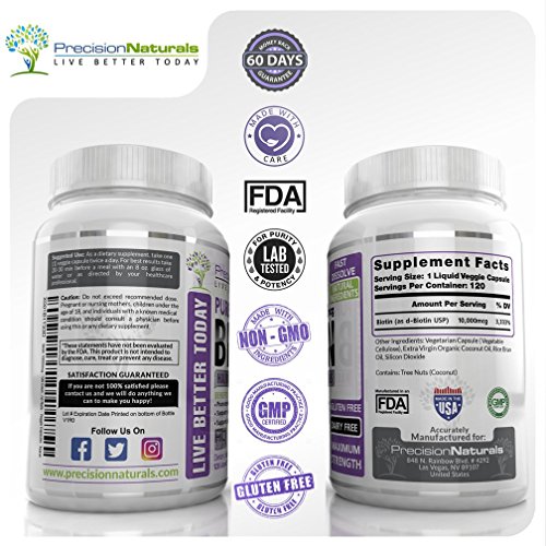 Biotin 10000mcg - 120 Count - Hair Skin and Nails Formula Maximum Strength Liquid Capsules Natu...