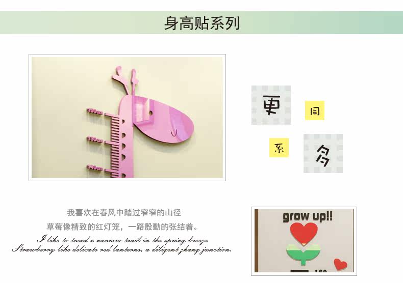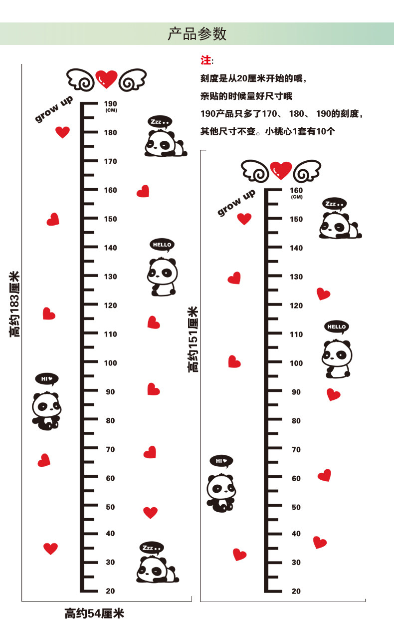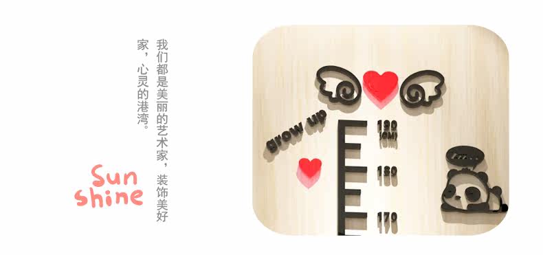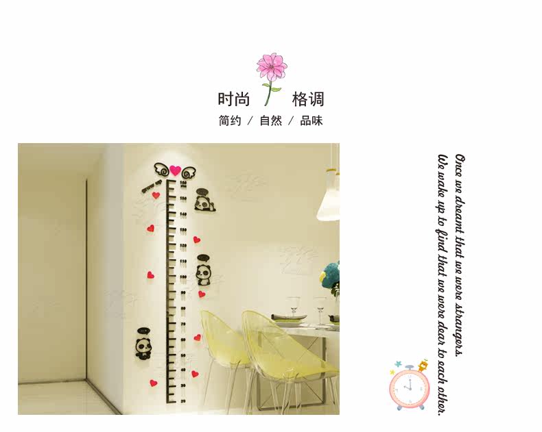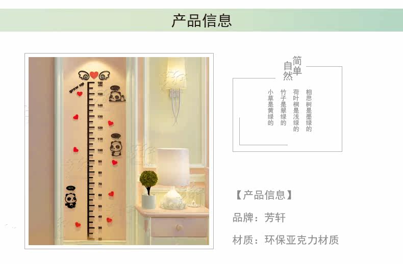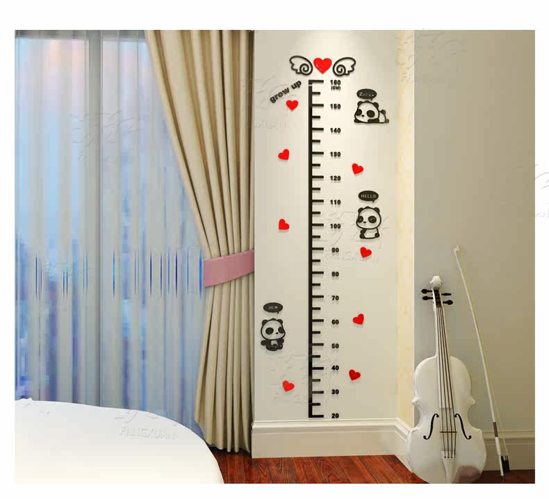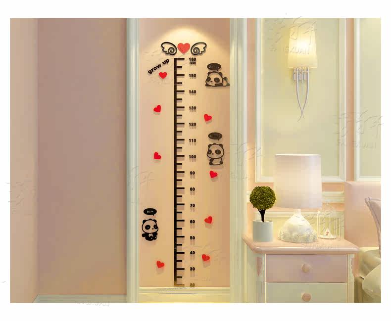 卡通熊猫水晶亚克力墙贴3d立体儿童房身高贴幼儿园宝宝测量身高尺