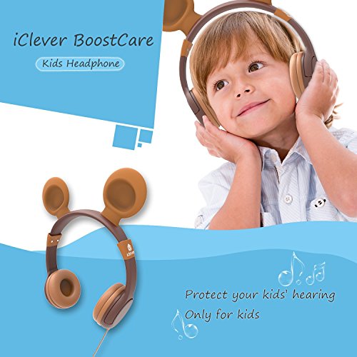 -. Binding : Wireless Phone Accessory -. Brand : iClever -. Color : Brown -. Feature : ICLEVER BOOSTCARE WIRED HEADPHONES A MUST FOR CAR RIDES, PLANE TRIPS, HANGING OUT OR AT HOME / SAFE&VOLUME-CONTROLLED TECHNOLOGY:Environment friendly material, RoHs, EN71,CPSIA,FCC approved, safe and comfortable. Built-in volume-controlled circuitry that ensures the sound is within levels recommended safe for young children's eardrums and inner ear at 85db / DURABLE, ADORABLE CHILD FRIENDLY DESIGN: twistable, bendable, stretchable fun, made with durable food-grade material and tangle-free cords, soft touch, kid/child friendly. Soft silicon bear ear, makes this cute over the ear headphones for a good gift for family/friends kids or grandkids and good also for kindergarten/pre-school teachers / CUSTOM DESIGN FIT:custom designed for children ages 3 and up, with adjustable headband and cushioned earpads and headband, (Recommended for kids 3-12) / UNIVERSAL COMPATIBILITY:using a standard 3.5mm headphone jack, our childrens headphones works with virtually all smartphones and kids tablets, compatible with iphones, ipads, androids and more, 18 month warranty -. Label : iClever -. Manufacturer : iClever -. Model : HS11-1 -. MPN : HS11-1 -. PackageQuantity : 1 -. PartNumber : HS11-1 -. ProductGroup : Wireless -. ProductTypeName : HEADPHONES -. Publisher : iClever -. Studio : iClever -. Title : [Safety Child Headphones ]iClever BoostCare Wired Kids Headphones with Bear Ear Over Ear Headsets with 85 Volume Limited, Food Grade Silicon Material(HS11), Brown