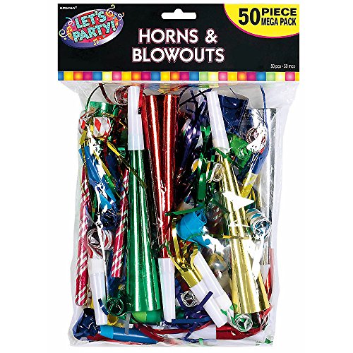 Studio : Amscan Publisher : Amscan Binding : Toy Product Description Our Horns and Blowouts Mega Pack is the best way to be sure all your guests can make some noise when the clock strikes midnight! Each package features an assortment of horns and blowouts in bright colorful colors. Perfect for New Years or any other occasion. Package includes 50 assorted noisemakers. 0