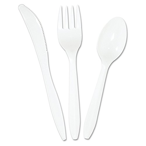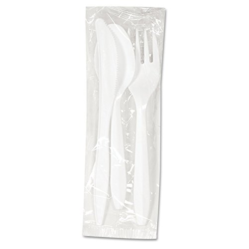 Boardwalk COMBOKIT Three-Piece Wrapped Cutlery Kit, Fork, Knife, Spoon, White (Case of 250)