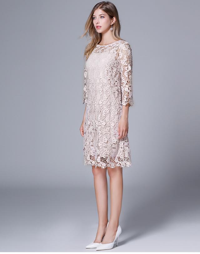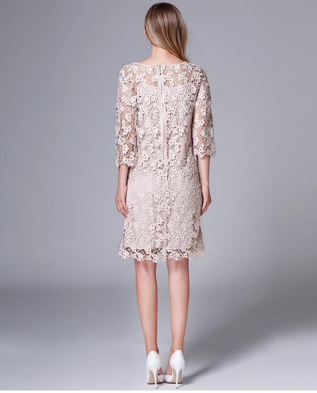 レース 刺繍 七分袖 長袖 膝丈 ワンピース パーティードレス 結婚式 二次会 披露宴 パーティー デート 女子会 食事会 卒業式 謝恩会 親族 お呼ばれ フォーマル 演奏会 コンサート 発表会 膝下 大きいサイズ L 2L 3L 4L 5L ピンク フレア 10代 20代 30代