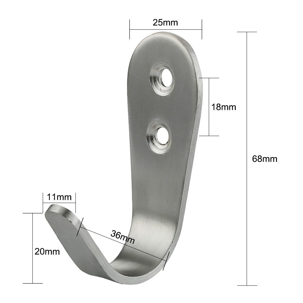 Wall hook stainless steel 10 pieces Load capacity 15kg With screw