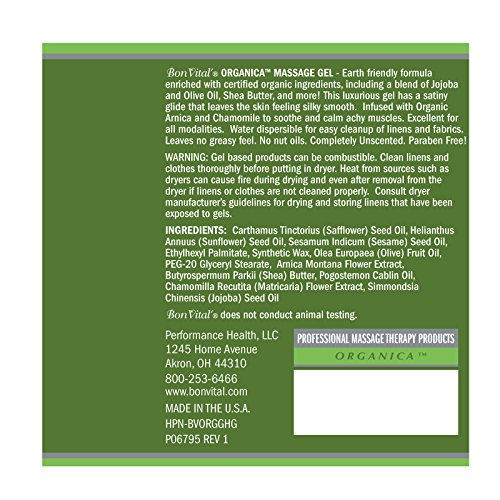 ReleaseDate : 2017-05-15 Studio : Bon Vital' Publisher : Bon Vital' Binding : Misc. Product Description Bon vital, the #1 preferred brand of massage Therapists focusing on professional quality products, brings you a line of massage products made with certified organic ingredients that can be used for all massage modalities and techniques. The bon vital organic a line of creme, lotion, and gel leverages the benefits of earth-friendly ingredients to provide intense hydration to dry skin. The unscented, water-dispersible formulas are ideal for blending with bon vital essential oils to create the ultimate Aromatherapy massage experience. 0