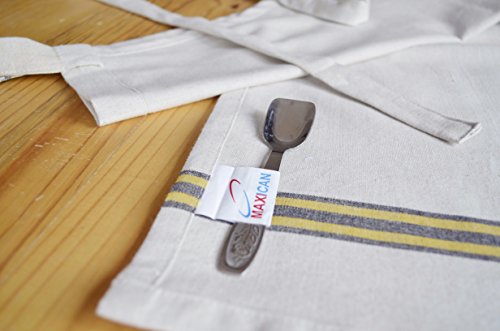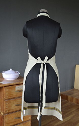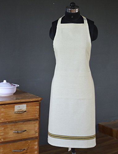 Maxican Apron, 100% Cotton Fashionable Women Kitchen Apron Perfect for Cooking & Baking with front pocket, 24"x35" Full in Length (Beige)