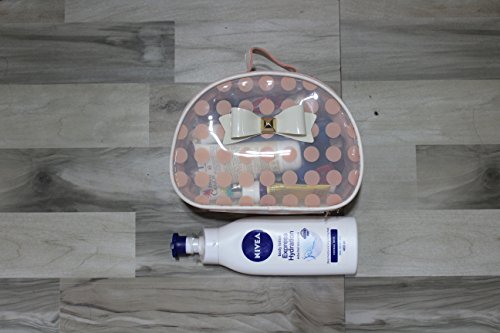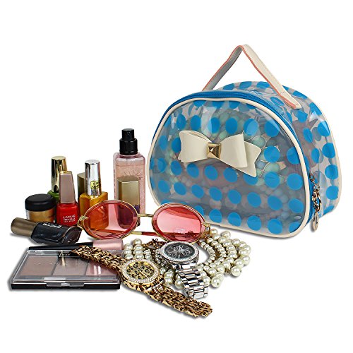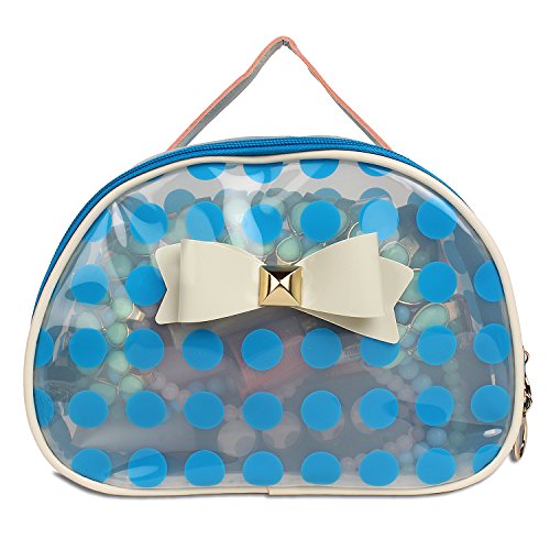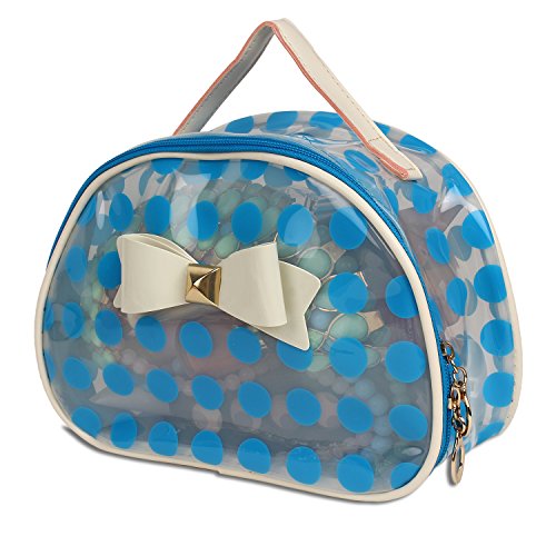 Catchin24 Navy Blue Polka Top Open Cosmetic Makeup Toiletry Bag Organizer
