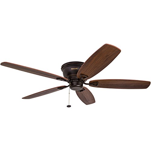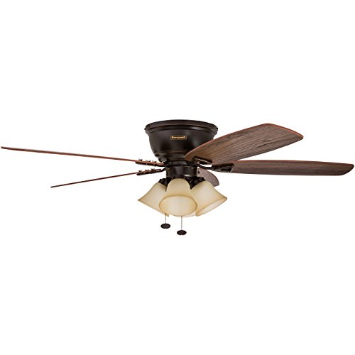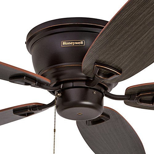 Keep your space cool with a Classic Low-Profile Honeywell Ceiling Fan. This fan has a warm design that will complement most any space. Hang it in a living area or family room to keep things cool in the summer months and even reverse the motor to keep it warm in the winter! The 52 inch ceiling fan is energy-efficient and easy to install, so you can start enjoying the comfort in no time. It comes with 3 different options for mounting, too. This timeless fan will keep you cool for years to come.