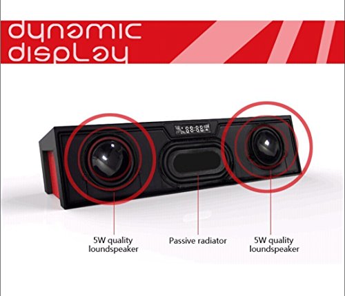 - Feature : High quality sound: Enjoy impressive sound quality and bass through dual 3W audio drives and subwoofer. / Longer play time: up to 15-hour playtime powered by a built-in rechargeable 2200mAh Li-ion battery, longer than many similar sized dual driver speaker. / Compatible with most Bluetooth-enabled devices: iPhone 6, 6 Plus 5S 5C 5, 4S 4 / Oneplus / iPad 4 3 2, iPad Air / Samsung Galaxy S5 S4 S3 / Galaxy Tab and Laptops / PC Computers / MP3 Players; 3.5mm audio line in and USB input acceptable. Support MP3, WMA, WAV, APE and FLAC format. / Offers 8 in 1 practical functions in addition to the stylish looks. Time(LCD displays Time, it's 24h), Bluetooth speaker, FM radio Speaker, Supporting TF card, USB flash disk.Built-In Microphone, Alarm Clock,3.5mm Audio Port / Includes USB charging cable. 40 days money back. Please contact us if you are faced with issues.