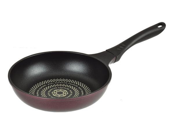 ダイヤモンド粒子配合の強力3層コーティングでキズに強く金属ヘラも使えます。さらに汚れやコゲがこびりつきにくく少量の油で調理できます。 |
