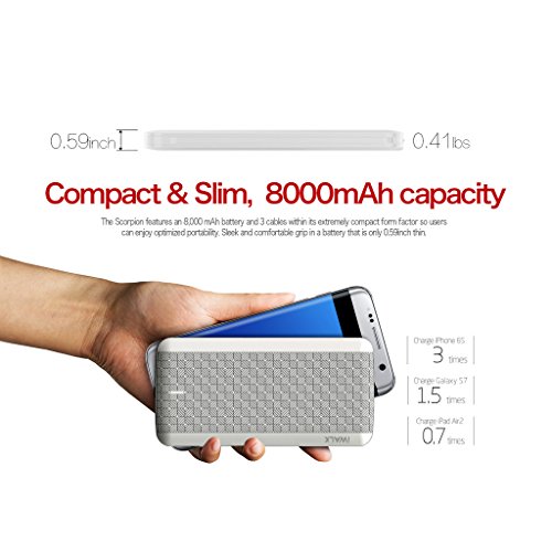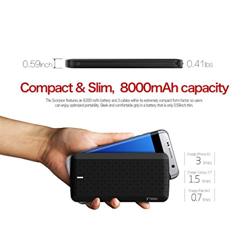 -. Binding : Wireless Phone Accessory -. Brand : iWALK -. Feature : The true built-in cables power bank, Scorpion has Built-in 3 cables ,Lightning cable for Apple devices, Micro USB cable for Android devices, and Standard USB cable for recharging Scorpion. / Large capacity 8000mAh, and fast charging. Scorpion can charge iPhone 6S 3 times or Galaxy S7 1.5 times, with the quickest speed up to 2.4A / Data Sync, Built-in Lightning and USB cables will transfer data while charging IOS devices with computers. / Charge multiple devices at one time, and Multi Protect safety system ensures complete protection for you and your devices. / Pass through technology, enable the power bank charges and discharge simultaneously. ensures the power bank is always topped up and ready to go. -. Label : U2O Global -. Manufacturer : U2O Global -. MPN : iWALK-T08 -. PackageQuantity : 1 -. PartNumber : iWALK-T08 -. ProductGroup : Wireless -. ProductTypeName : WIRELESS_ACCESSORY -. Publisher : U2O Global -. Studio : U2O Global -. Title : iWALK Scorpion Ultra Slim Power Bank with Built in Cables, 8000mAh Portable Cell Phone External Battery Charger with Built in Lightning, Micro USB, and USB Recharging Cables