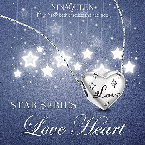-. Title : NinaQueen "Pure Love" 925 Sterling Silver Screw-On Heart Bead Charm with Zirconia