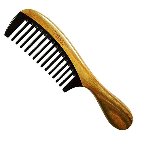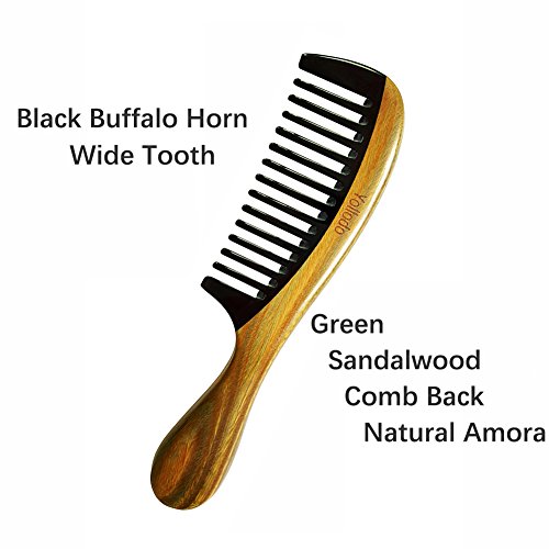 Yollodo Sandalwood Hair Comb - Black Buffalo Horn Wood Comb Wide Tooth - No Static Wooden Comb for Women Detangling or Curly