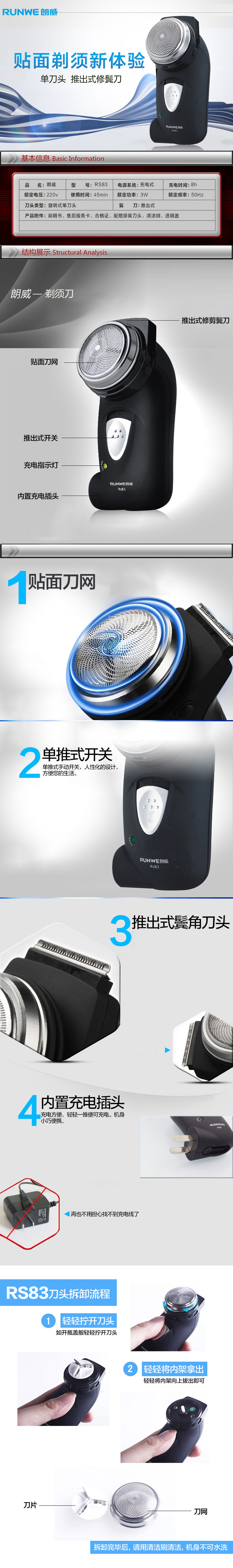 朗威RS83剃须刀电动刮胡刀充电男人剃须刀单头胡须刀修剪鬓刀