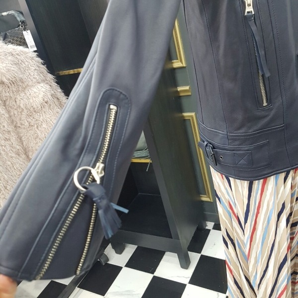 일반적으로 나오는 숏한 기장의 라이더와는 다르게 살짝 루즈하며 힙중간까지 덮는