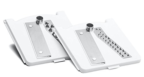 Includes 3 sets of different blades sizes: 1/8 inches (3 mm) spacing, 1/4 inches (6 mm) spacing, and a straight 1/8 inches (3 mm) blade for long ribbon-like strands