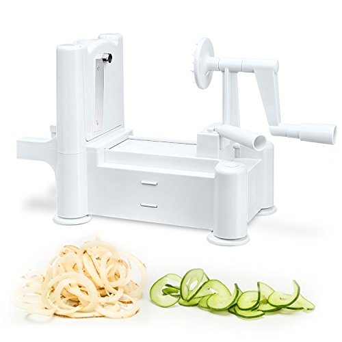 Spiralize zucchini, carrots, potatoes, cucumbers, radishes, etc. Make zucchini spaghetti, cucumber ribbon strands, curly fries or long, spiral apple strands and more. 100% BPA-free, makes it safe on food