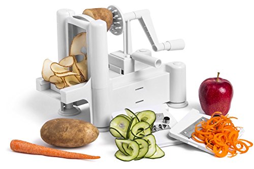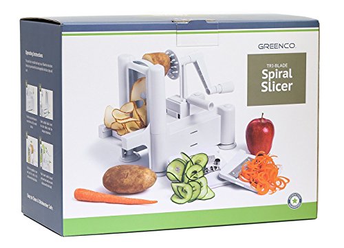 Greenco Strongest-and-heaviest Duty Professional Manual Tri-blade Spiralizer, Fruit and Vegetable Spiral Slicer - 3 Different Sizes of Japanese Stainless Steel Blades with Strong Suction Base