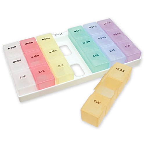 Studio : MaxiAids Publisher : MaxiAids Binding : Health and Beauty Product Description This sturdy pill organizer makes arranging your meds a breeze. Color coding enables users with low vision to independently choose the right day's pillboxes. Each pillbox also has tactile text in English indicating morning, noon or night on the appropriate section. If you are going to be out for the day, just pop the day's attached pillboxes out of the containing tray for easy packing in purse, pocket or briefcase. The lip of the containing tray is marked in Braille with each day's English initial. Also the first three letters of each day's name are marked in tactile letters on the tray's lip. Easy-open lids make taking your meds easier than ever before. Each day's attached pillboxes measure 1 1/4 x 4 3/4. The complete unit measures 5 x 8 3/4. 0