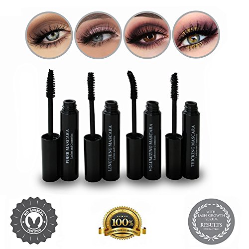 ★ WATERPROOF AND HYPOALLERGENIC NEVER TESTED ON ANIMALS - All The Mascaras In The Kit Are Waterproof And Easy To Remove With Warm Soap And Water. Never Tested On Animals. All Mascara Are Black Mascaras. All Mascaras Are Hypoallergenic And Safe For Contact Wearers.