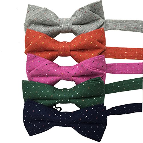 -. Feature : Cotton Mens Bowtie Bow Ties / 5 Piece set of adjustable, pre-tied, double bowties in various designs and colors / EASY TO WEAR pre-tied handmade banded bowties / ASSORTED COLORS - each set comes prepackaged with 5 different colors to suit your style / GREAT FOR FORMAL EVENTS, weddings, balls, parties etc. and can be adjusted to fit young boys to adults.