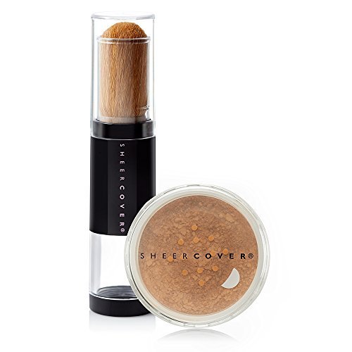 Sheer Cover – Mineral Foundation Kit – Mineral Powder – Mocha Shade – with FREE Black Travel Brush – 30 Day Supply/2 Pieces