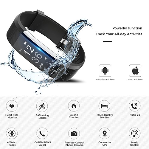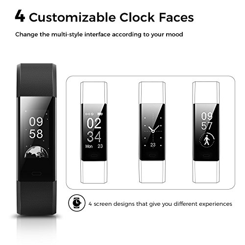-. Feature : SUPERIOR DESIGN: gorgeous OLED touch screen, clear display for text, calls, symbols; hypoallergenic TPU bracelet material ( 5.9 - 8.9 inch ) and adjustable silicon band fits different wrist sizes and comfortably suites kids, men and women and doesn't slip or rub, provides comfortable and ultra wearing experiences; to charge Remove the straps and insert the smart tracker into the USB interface, then the Fitness Tracker shows red indicator light when charged properly, WIHTOUT CHARGING CABLE / TRACK for VARIOUS EXERCISE TYPES: Smart Band can track for 14 kinds exercises types: Jogging, Walking, Riding, Hiking, Trekking, Badminton, Fitness, Climbing, Treadmill, Yoga, Basketball, Football, Tennis, Dancing activities; syncing the sport data with mobile app by Bluetooth 4.0; manage your exercising goals at any time; sporting pedometer counts steps, movement distance, burnt calories, exercise duration and average speed, mobile GPS tracks your Motion, Running and Route all the time / INTELLIGENT REMOTE CONTROL and HR MONITOR: Support remote your mobile phone camera, it will be more convenient to take pictures and share with your friends and family; Built in high performance motion sensor, helpful to measure the real time heart rate, Night and Sports mode, different modes for clock appearance / CALL REMINDER and SMS NOTIFIER: Auto sync calls, messages, Facebook,Twitter, weather messages; Wrist gesture wakes the tracker up, quickly see the notifications; alarm clock and remindings with quiet vibration / Comprehensive Guarantee: We offer a 30 day money back, inquiries within 24 hours to make you happy and satisfied with our product; If for any reason you are not satisfied or have any issues with our Smart Fitness Watch, please do not hesitate to contact us via email, we will try our best to help you