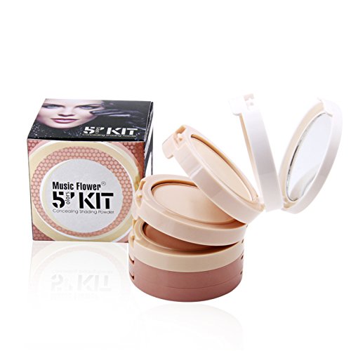FantasyDay Pro 5 Colors Multi-layer Face Powder Compact Face Correcting Pressed Powder Makeup Kit Foundation Highlighter Bronzing Powder Contouring...