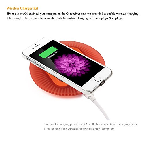 -. Feature : EASY INSTALLATION --- You can just insert it into charging port, simply put your iPhone 6 on a Qi wireless charging pad to start charging, it does not interfere with any other functions of your iPhone. Convenient and saves time when you are working, driving or on the go. / SPECIAL DESIGN --- Specially designed for your iPhone 6, built-in Qi wireless receiver module chip,to charge your iPhone 6 quickly at a speed comparable to wired charging. Moreover, it's a phone case, can protect your iPhone from bumps,scratch,dust,shock and other harms. / HIGH POWER EFFICIENCY --- > 70% high wireless charging efficiency,works seamlessly with all Qi wireless charger pad. | Note : A Qi wireless charger is required (not included) to charge iPhone wirelessly. / NOTE ---- Only can be used with Qi standard wireless charger, Please note that some single-coil wireless charging stands (e.g. Nokia CR-200, DT-910) are not designed to work with iPhone. Ensure your charger stand is compatible with iPhone before purchase. / USING TIPS --- Installation: firstly plug the connector into charging port, then put on that receiver case. Tear : firstly take off that receiver case, then unplug the connector from charging port. OR the receiver BROKEN will happen.