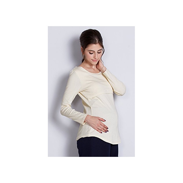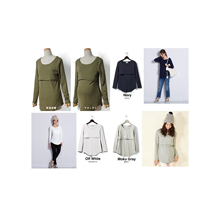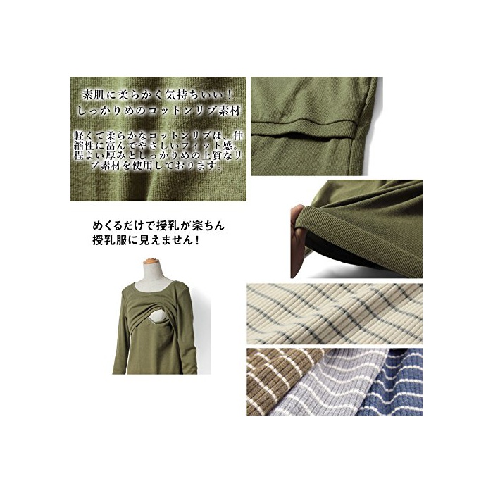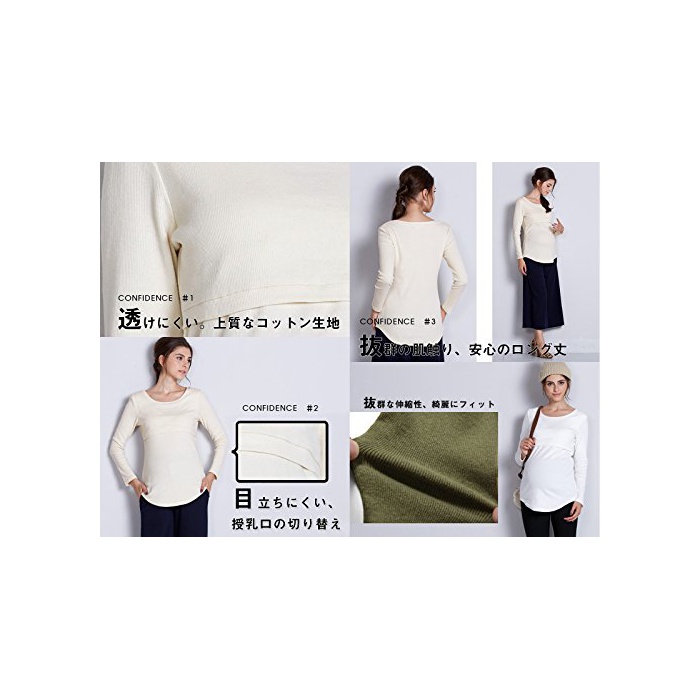 원본상품명: Sweet Mommy マタニティトップス 授乳服 柔らかコットンリブ 授乳口付き Tシャツ ロング丈 スリムフィット カットソ? 大きいサイズ 春 秋 冬 長袖 産前産後