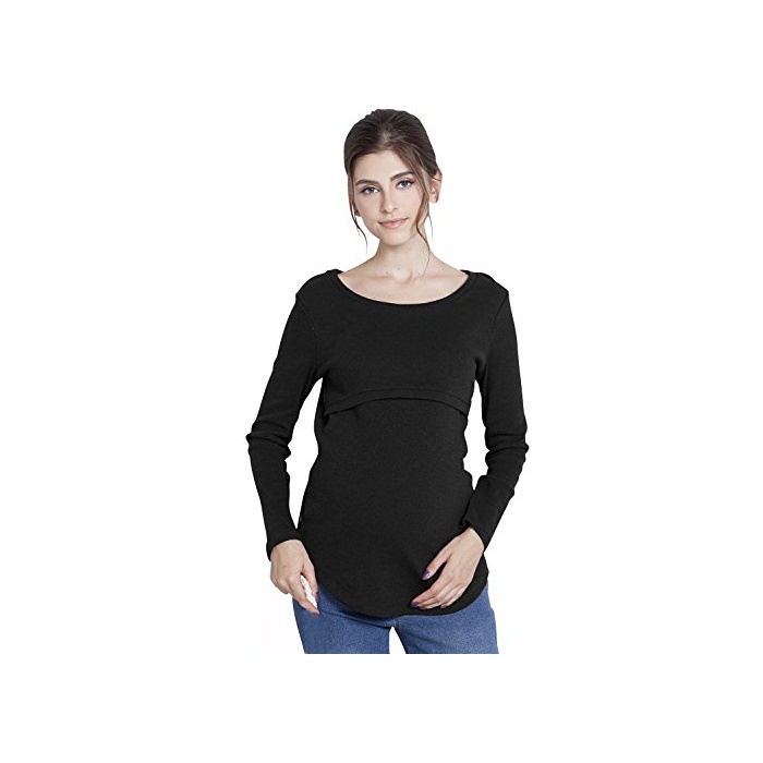 스위트마미 Sweet Mommy 부드러움등인지(든가) 코튼 리브 소재경 피트 깨끗하게 데콜테(Decolletee) 롱 길이 심플 수유 톱스 컷소우 수유복 마타니티 M 블랙