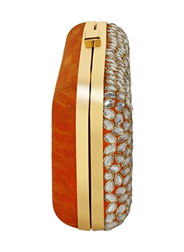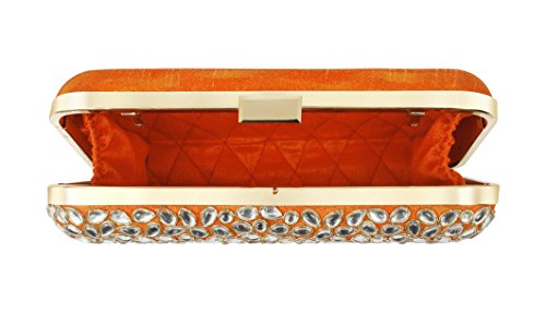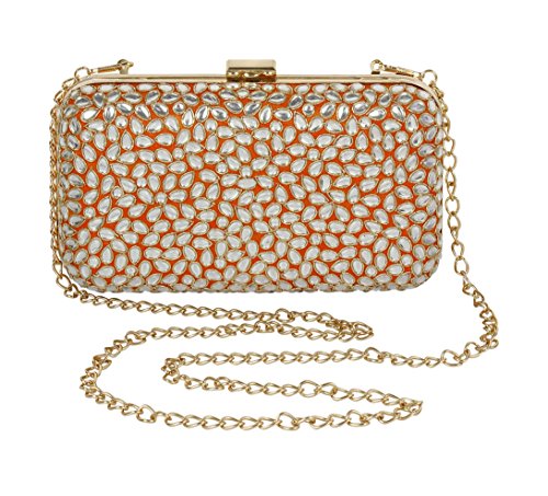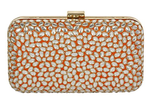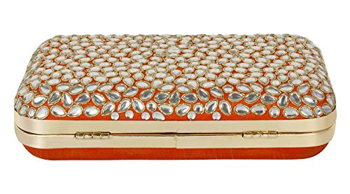 (Purse Collection)/Accessories/Handbags/DIRECT FROM USA/Purse Collection Party Wear Beaded Orange Clutch With Kundan Stone For Women's