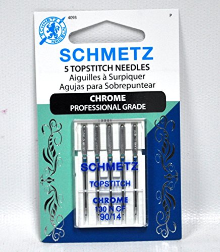 -. Feature : Chrome Topstitch needle, size 90/14. / 5 Topstitch Needles in Pack. / Schmetz Topstitch Needles Has an extra long eye and a large groove. For use with topstitch, heavy, multiple, or poor quality threads. / Chrome Professional Grade. / Item No.: 4093