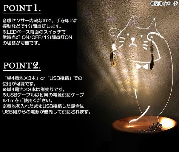 | インテリアにマッチする、シンプルなデザインのLEDアクセサリースタンドです。音感センサー内蔵ですので、手を叩くと点灯し60秒後に自動消灯します。 |