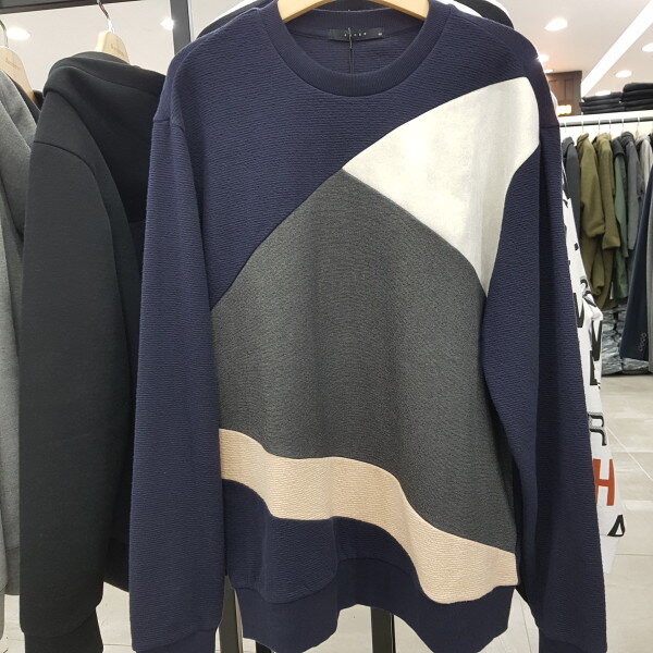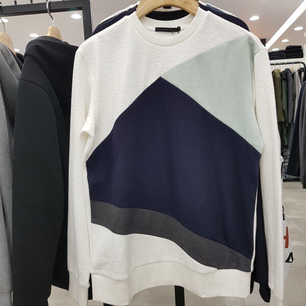 남성 스웨이드배색 절개 맨투맨티셔츠