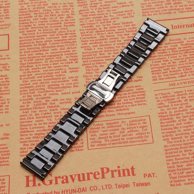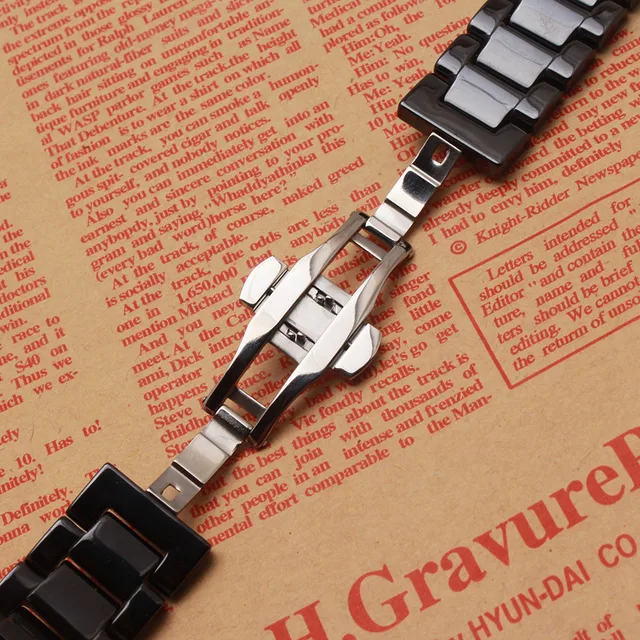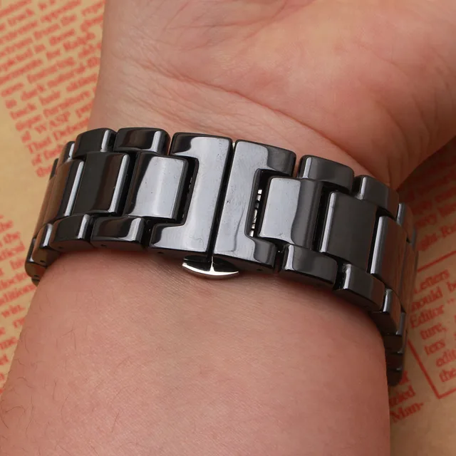 | [해외]2017 프로모션 새로운 시계 밴드 세라믹 시계 스트랩 samsung gear s3 프론티어 실버 butterfly 버클 시계 줄 광택 블랙 |