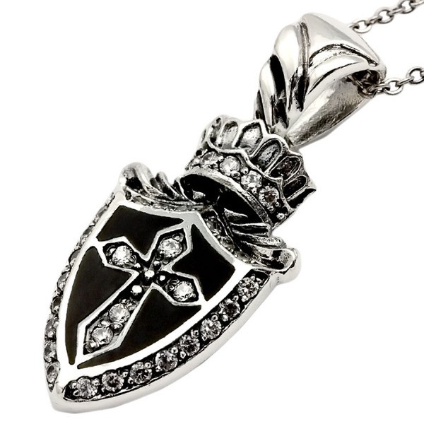 ワイルドなエンブレム調のRoyal Jokerディターミネイションペンダント。確固たる決断力を持つクロスを中央にデザインしまわりをホワイトCZ(キュービックジルコニア)で囲いゴージャスにクラウンもセット。存在感溢れるペンダントはメンズスタイルにパンチを与えてくれるアイテムです。本物のシルバーだから出せる質感が堪能できるアイテムです。専用のケースが無料で付属するので、プレゼント・ギフトにとってもオススメです。