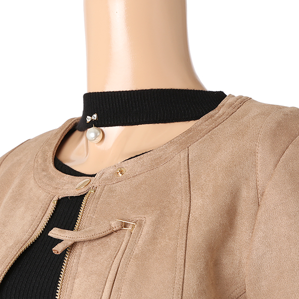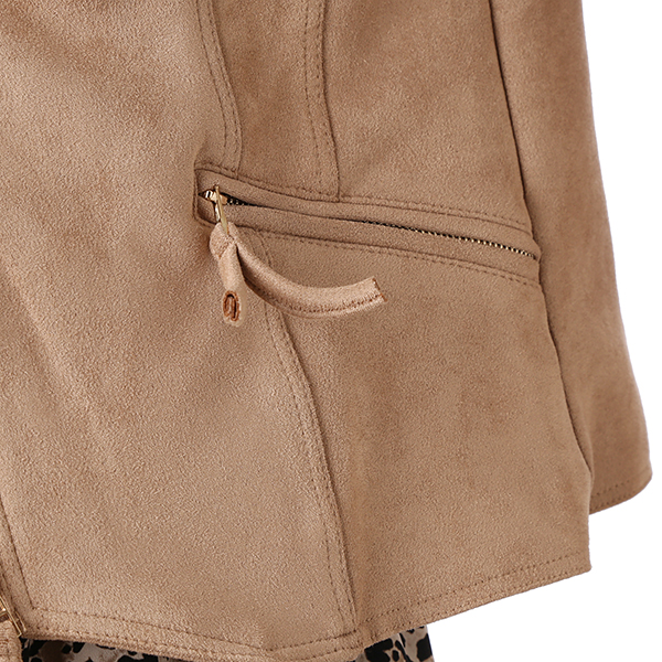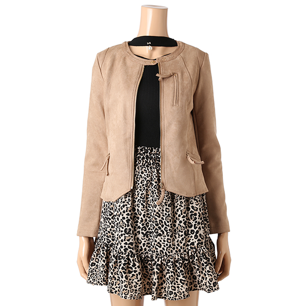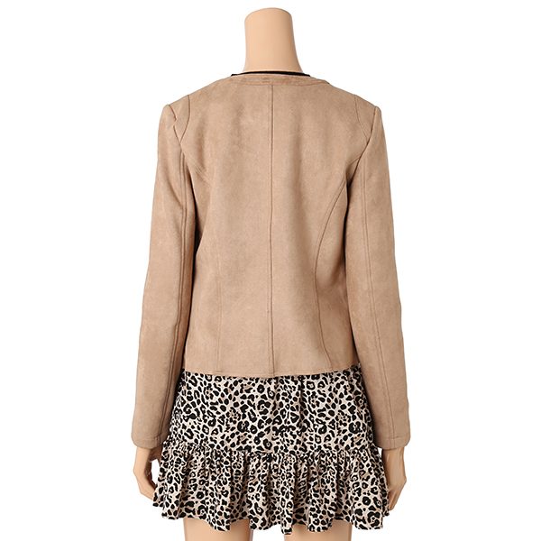넥라인의 디테일과 밑단의 컷팅디자인이 멋진 스웨이드 느낌의