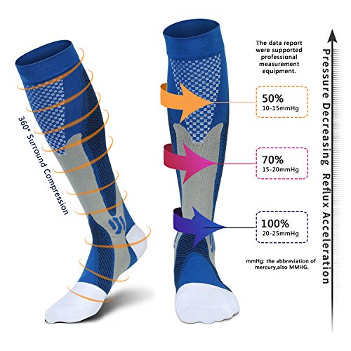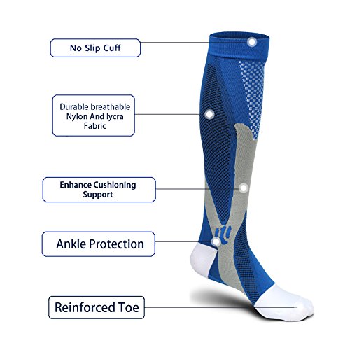 COMPRESSION THERAPY TECHNOLOGY: Our graduation compression technology (20-30MmHg) provides true graduated compression, stimulates blood flow and improves oxygen delivery to your muscles. Better oxygen circulation helps reduce lactic acid build up, prevent cramping, fatigue, swelling, help muscle recovery and relieve discomfort related to painful sports or occupation-related conditions. Yes, our compression socks can do it.